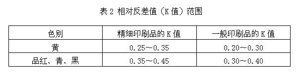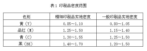 暗調(diào)密度范圍見(jiàn)表1。